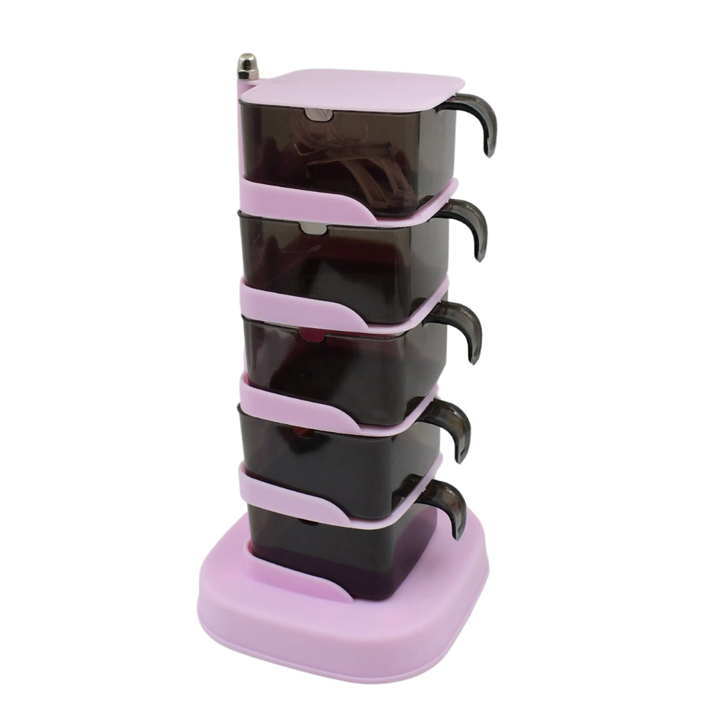 Rotating Spice Jars Vertical Rotatable Seasoning Box Kitchen Tools Seasoning Rack Rotatable Spice Pots Condiment Pots for Pantry Dining Room, 5 Section / Tier With 5 Spoon (1 Set)